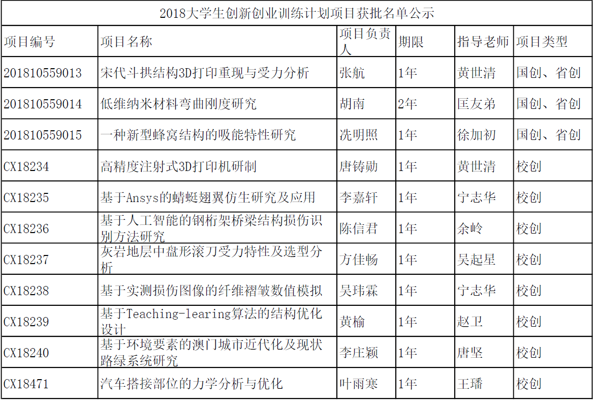 根据《bat365在线平台登录关于公布2018年度大学生创新创业训练计划立项项目名单的通知》(见暨教〔2018〕34号文),学校组织开展了创新创业训练计划项目的申报工作。根据教育部、广东省教育厅及学校相关文件精神,学校依照三级项目同时申报、分级立项的原则,通过在校级项目中择优遴选省级项目、省级项目中择优遴选国家级项目的方式,最终bat365在线平台登录申请的11项大学生创新创业训练计划项目获批立项,名单如下: