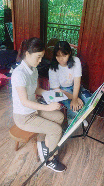 同学们在老师的指导下绘画