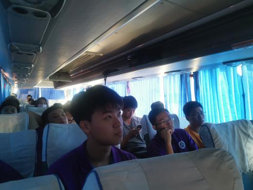 (梁俊严在车上为同学分享答疑)