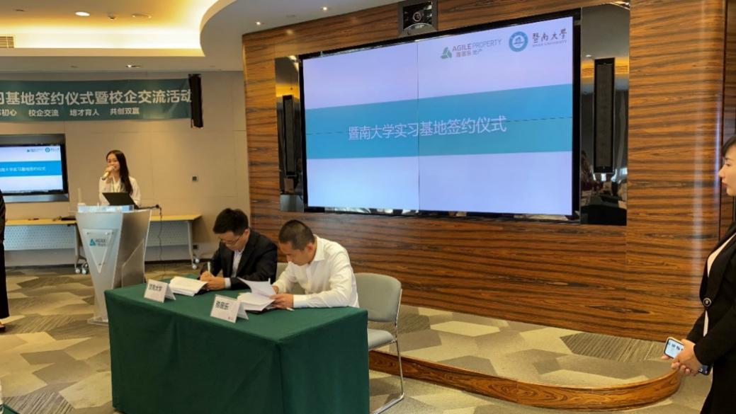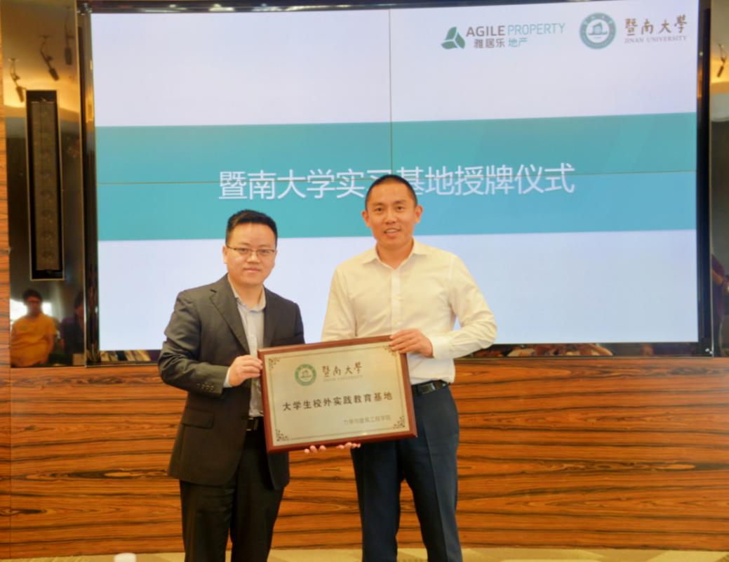当天下午,在雅居乐员工的带领下,师生们参观了雅居乐3FF多功能展厅,了解了雅居乐从创立至今的发展历程。为校企搭建构筑产学结合的人才培养平台,双方就科学研究、课程嵌入、校外导师等方面深入沟通交流并签订共建协议。雅居乐控股公司人力行政部总经理张咏、雅居乐地产集团广州区域总裁张海明、人力行政部总监张筱、人力资源经理汤瑞萍、人力行政部资深人力资源经理李青蓉、人力行政部高级行政经理黎姮、广州区域总裁高级秘书古成文(bat365在线平台登录2013级工程力学)、雅居乐地产集团广州区域人力资源专业师梁俊严(bat365在线平台登录2014级土木工程)等参加了bat365在线平台登录大学生校外实践教育基地签约及授牌仪式。