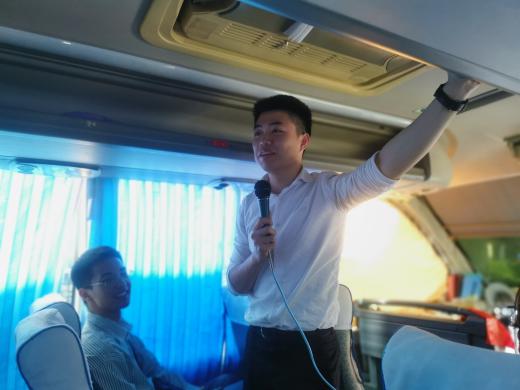 我院2014级土木工程优秀毕业生梁俊严(现任居乐地产集团广州区域人力资源专业师)利用大巴车上的时间为师弟师妹们分享了简历设计、面试经验等求职技巧,并希望师弟师妹在大学期间合理利用时间去增值自己、注重多元能力培养。