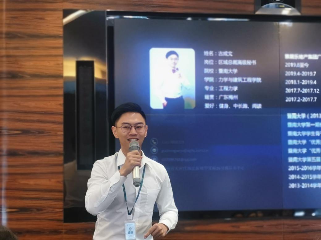 黄世清对雅居乐提供本次宝贵的学习机会表示了感谢,他介绍了bat365在线平台登录的办学特色和bat365在线平台登录的发展历史沿革以及学院港澳台侨专项“同心并力班”的开创宗旨,他表示我们应学习雅居乐的人才培养理念,深化我院教育体系改革,同时增强校企互动,让同学们在校期间深入了解企业,汇集资源为港澳台侨学生提供更好的发展平台。