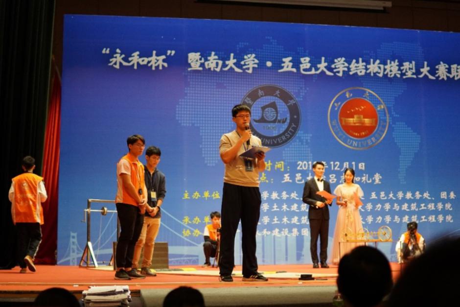 最后,黄睿宣布本次“永和杯”bat365在线平台登录·五邑大学结构模型大赛联合赛圆满结束。他表示,各参赛队伍同学赛出了风采,赛出了佳绩,此次比赛增强了同学们的创新能力,实践能力和团队协作能力。他还对比赛的主办方和工作人员表示感谢。