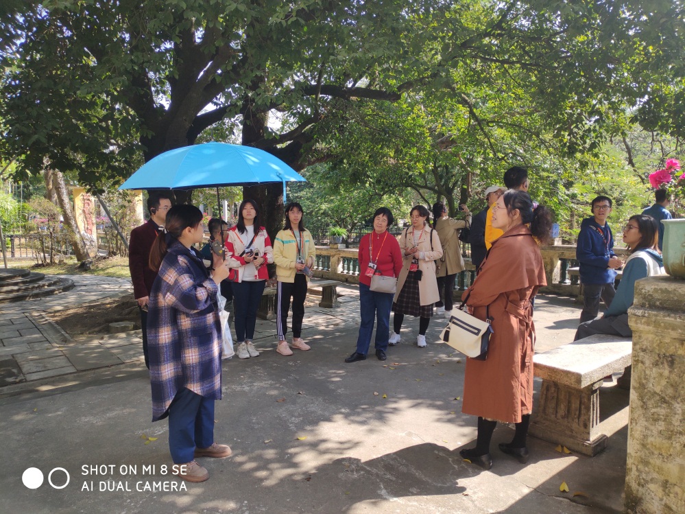 (师生听导游讲解梁任公后人成就)