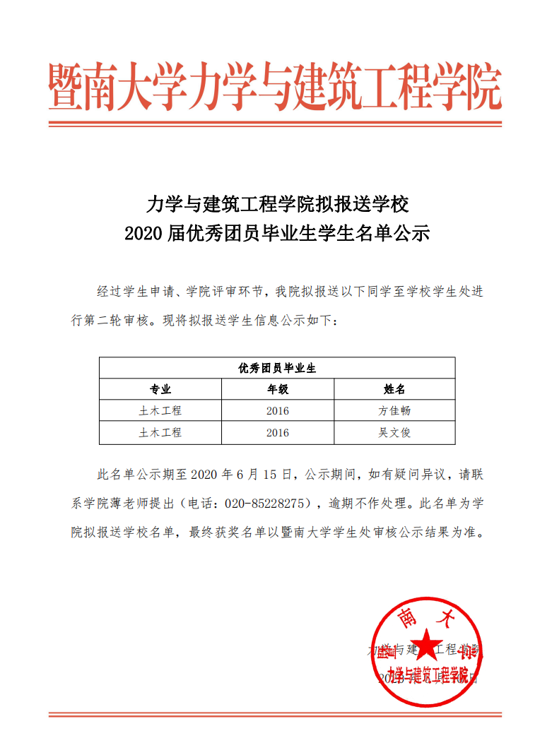 学院通知 | bat365在线平台登录拟报送学校2020届优秀团员毕业生学生名单公示