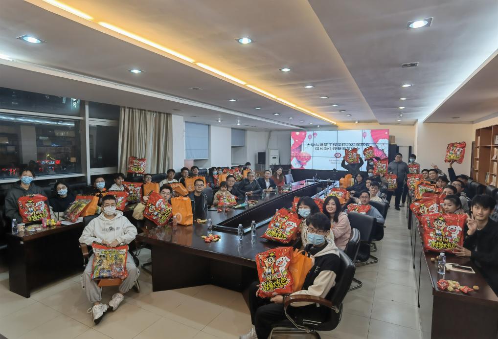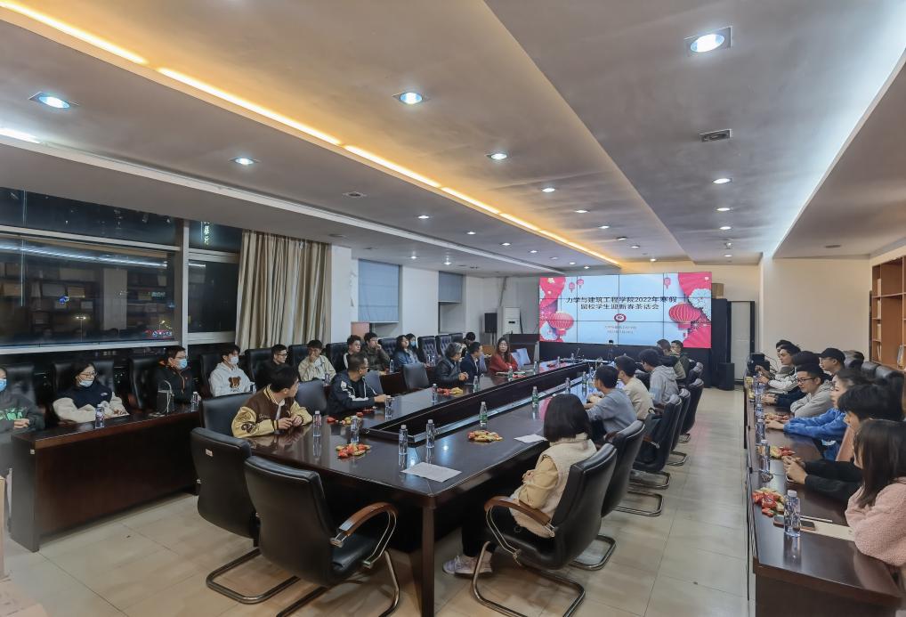 1月20日迎来了农历辛丑年最后一个节气大寒,年关将至,为了解学生假期学习生活情况,慰问留校过年学生,力学与建筑学院在蒙民伟理工楼515会议室举办2022年寒假留校学生迎新春茶话会。学院党委书记黄睿,主持工作副院长兼党委副书记聂振华,党委副书记兼副院长黄世清,建筑学教师陈全荣,研究生辅导员张璐,本科生辅导员陈婉纯和留校学生参加了茶话会。