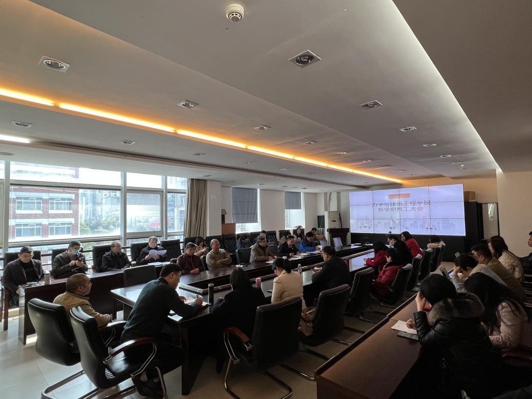 2022年2月24日下午,bat365在线平台登录新学期教工大会在蒙民伟理工楼515会议室举行,会议就新学期相关工作展开部署。学院党委书记黄睿、主持工作副院长兼党委副书记聂振华、副院长袁鸿、党委副书记兼副院长黄世清及学院全体教工参加了此次会议。会议由黄睿主持。