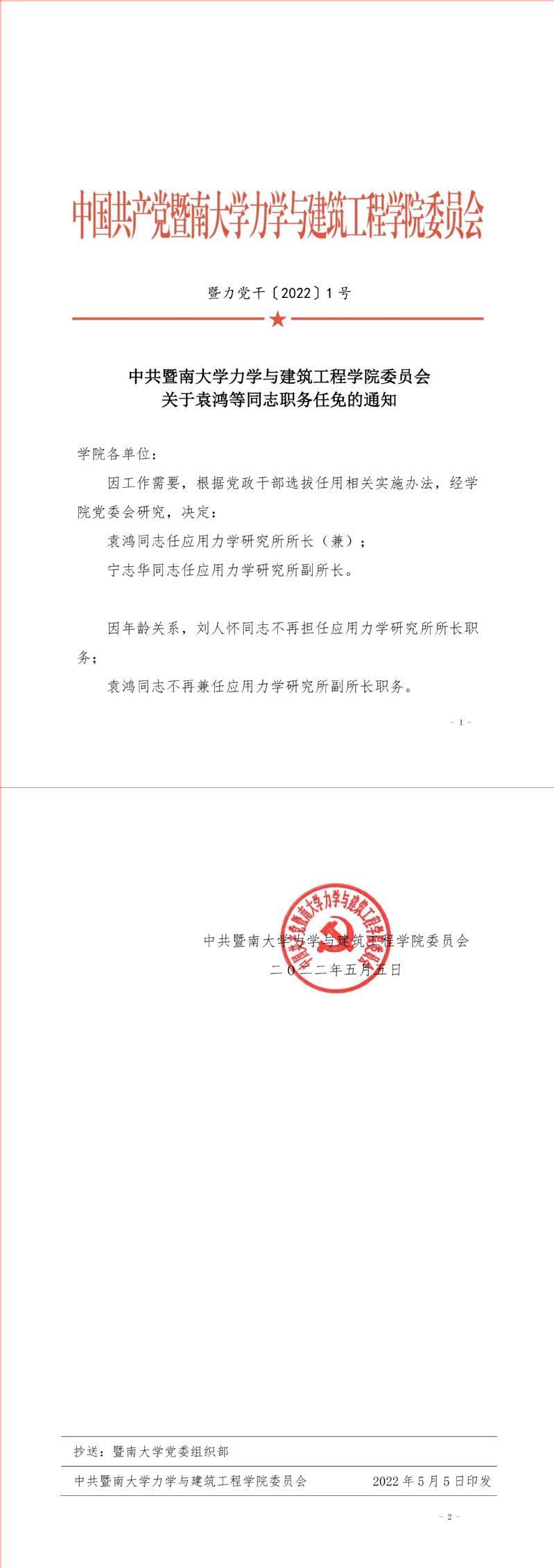 中共bat365在线平台登录委员会关于袁鸿等同志职务任免的通知