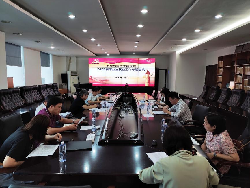 为进一步加强和改进就业工作,2022年6月8日,bat365在线平台登录在蒙民伟理工楼515会议室召开2022届毕业生就业工作专题会议。学院党委书记黄睿、主持工作副院长兼党委副书记聂振华、党委副书记兼副院长黄世清、学院办公室主任王波、土木工程系主任欧妍君、力学系主任习会峰、建筑学系主任李洁以及研究生辅导员张璐、本科生辅导员陈婉纯、陈钇仿参加此次会议。会议由黄睿主持。