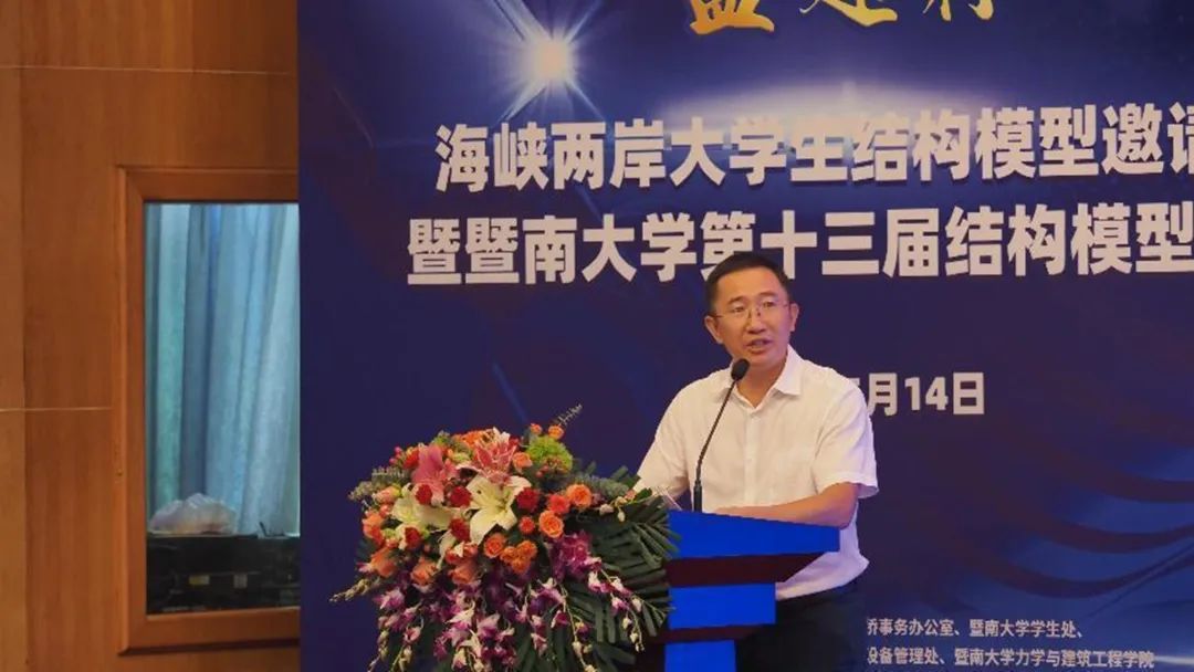 张荣华代表bat365在线平台登录为大赛致开幕辞,他向本次大赛的支持单位和关心青年学生学术科技竞赛的领导老师表示衷心感谢,同时向积极参加本次比赛的各高校队伍表示热烈欢迎。一直以来,bat365在线平台登录高度重视学生学术科技创新创业教育,不断改革工作机制,加大支持力度,其中bat365在线平台登录结构模型大赛是一项极富专业特色的学生学术科技创新活动,迄今为止已成功举办十二届,特别是在2016年成功举办的首届海峡两岸bat365在线平台登录结构模型大赛把这项赛事推向了一个高潮。张荣华还指出今年是全面贯彻落实党的二十大精神的开局之年,要以深入学习贯彻习近平新时代中国特色社会主义思想主题教育为契机,坚持落实立德树人根本任务,为党育人、为国育才,全面实施学校“十四五”规划,推动学校“双一流”和高水平建设再上新台阶。