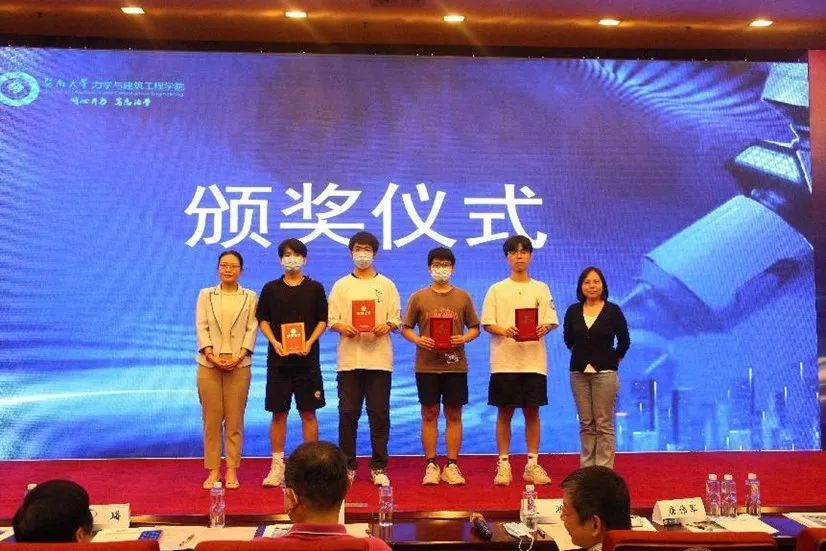 经过激烈的角逐,现场算法计分和评委打分综合产生了本届结构模型设计竞赛的获奖结果,最后由参加活动的相关领导和评委老师为获奖队伍颁发荣誉证书并合影留念。