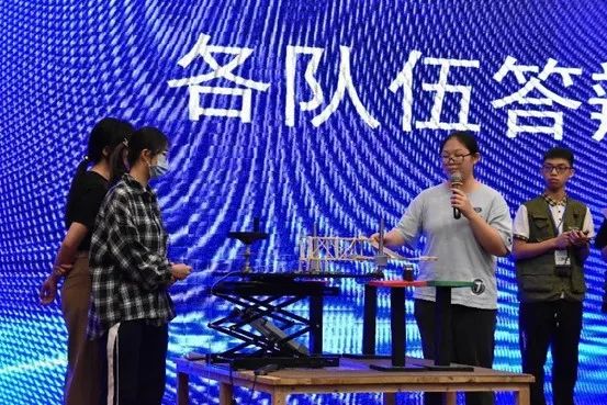 比赛结束后,由评委王璠进行点评。她指出此次赛题旨在考验基于航空航天或智能制造等领域的机械臂结构的设计、制作和校核,从土木工程方面的结构模型延伸到其他工程领域的结构模型是此次比赛的一个重要创新点。根据各团队的现场应答表现和比赛加载过程等方面,她肯定了参赛同学在力学分析、结构搭建等方面上所展示的扎实专业素养。