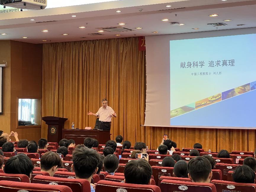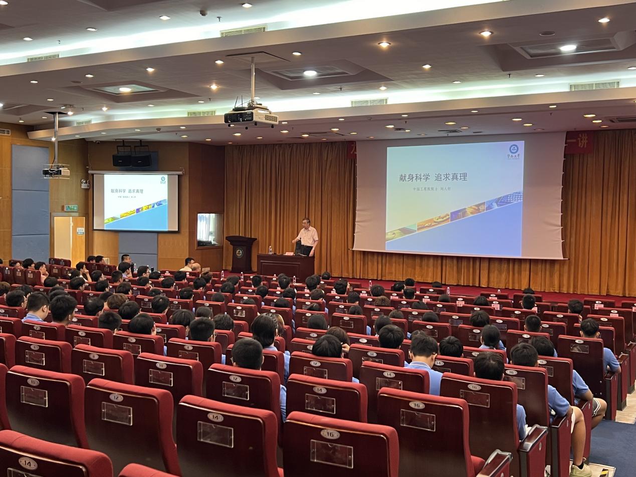 2024年9月11日下午,bat365在线平台登录在曾宪梓科学馆国际会议厅举办2024年新生名师讲堂第一讲,bat365在线平台登录原校长、bat365在线平台登录名誉院长、中国工程院刘人怀院士受邀作“献身科学 追求真理”专题讲座。讲座由学院院长聂振华教授主持,学院教师代表、辅导员及2024级全体新生参加。